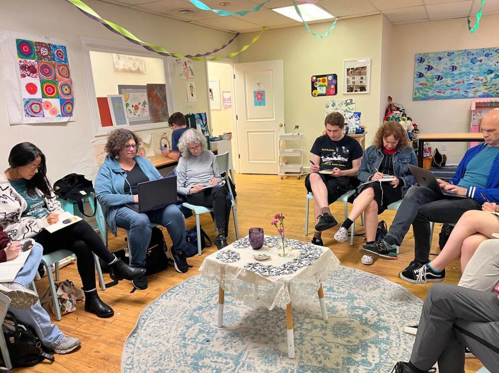 - What is the venue like? Creative Arts Workshop has tables and chairs for ~25 people. There is also an adjoining space with pillows if you prefer to write horizontally. Wine, seltzer water, tea, and snacks are available free of charge.